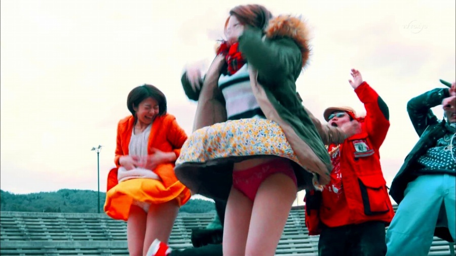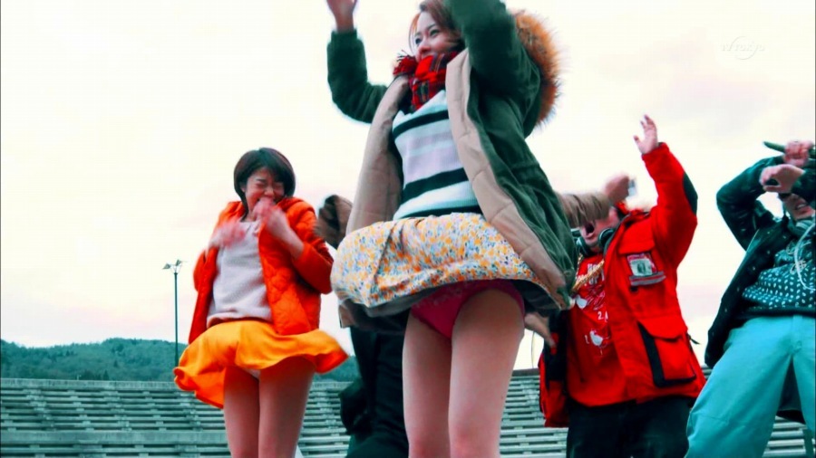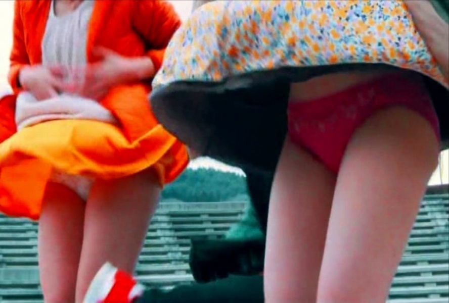 綺麗にスカートが捲れ上がってる!!